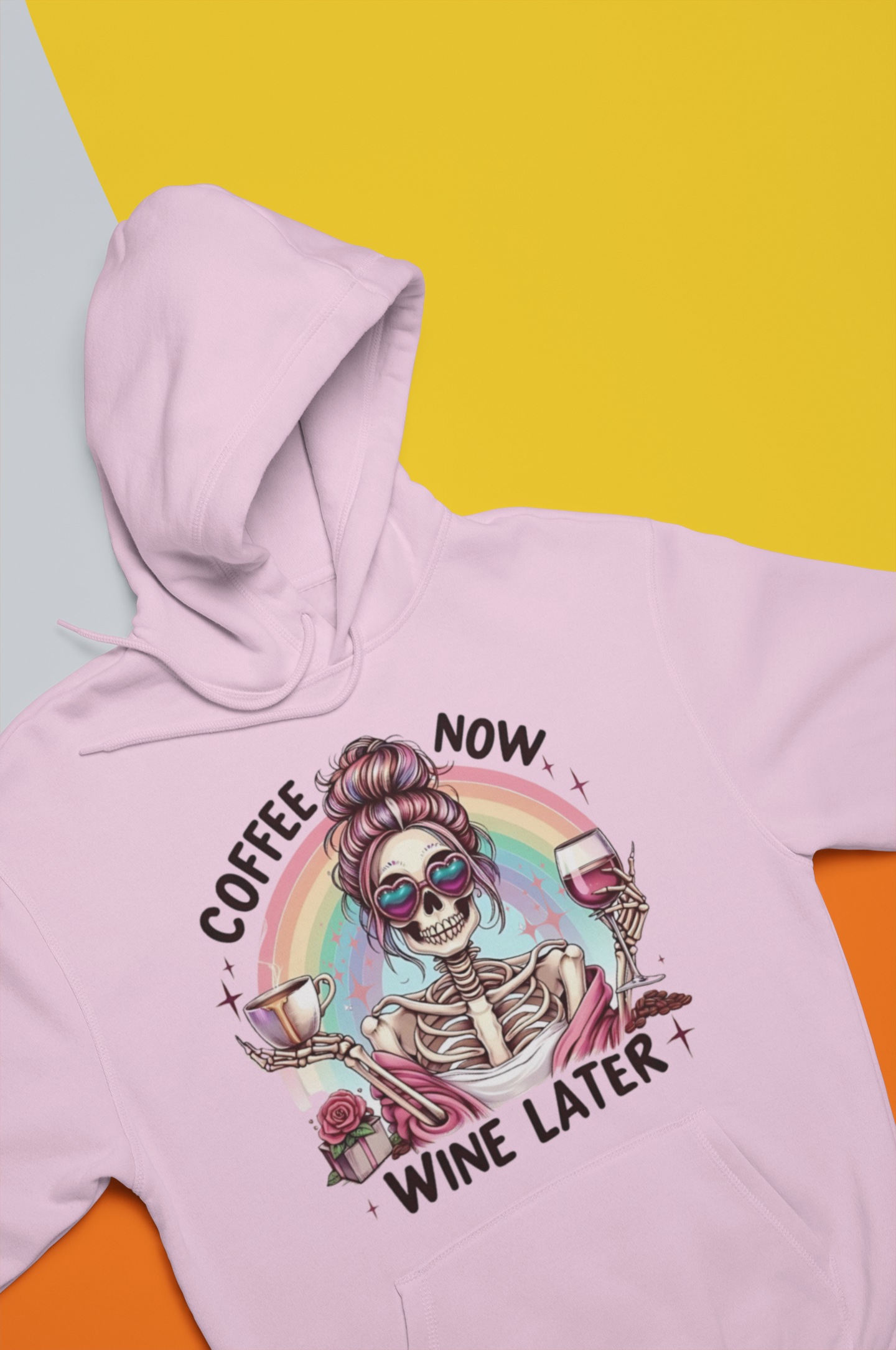 Bluza z kapturem z nadrukiem „Coffee now. Wine later”