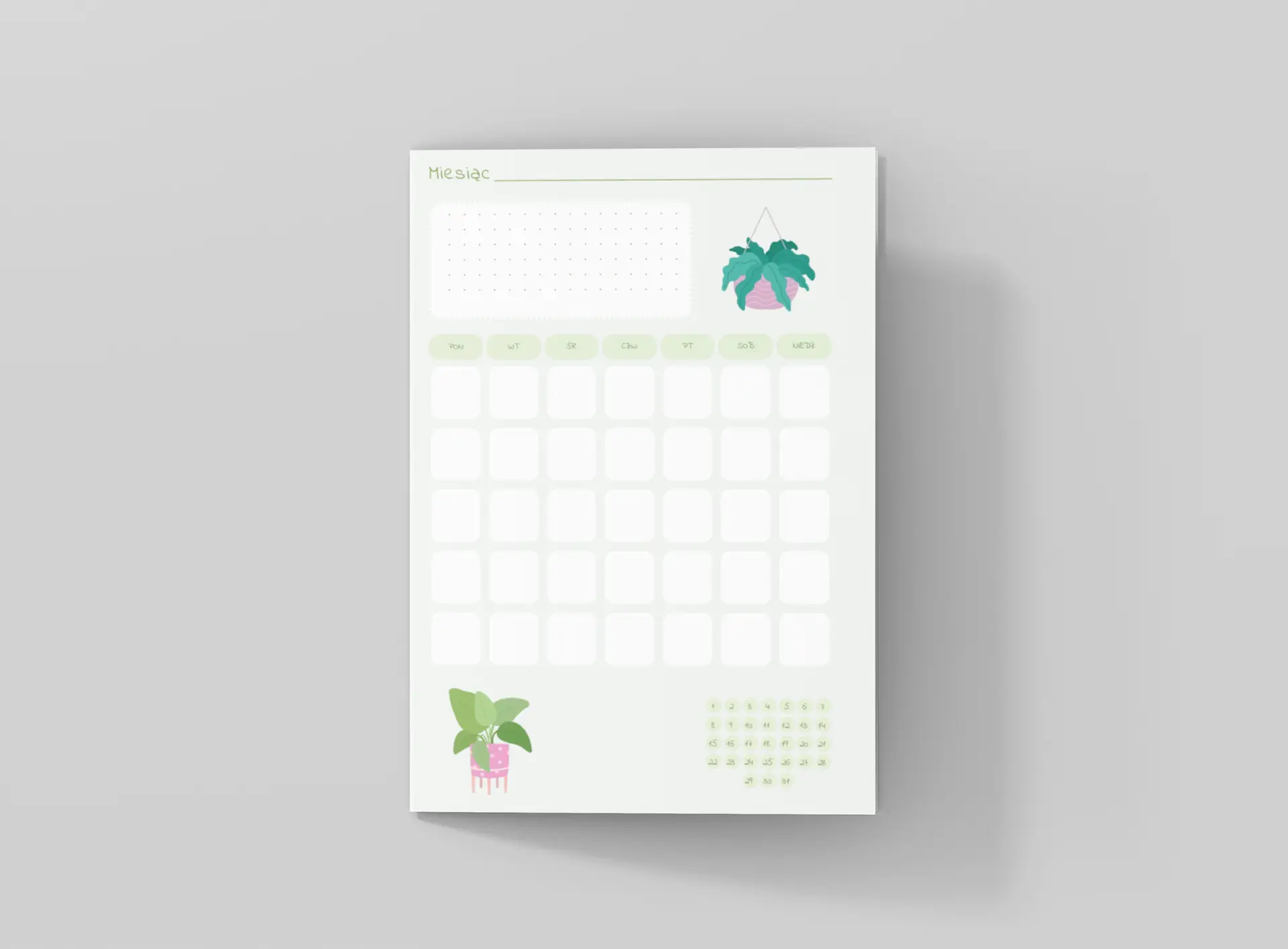 Minimalistyczny, ozdobny, kolorowy, elegancki – wybór należy do Ciebie. Planer miesięczny dostępny jest w różnych wariantach graficznych, co pozwala dopasować go do nastroju, sezonu lub konkretnego projektu. Możesz łączyć style albo trzymać się jednego przez cały rok – to Ty decydujesz, jak wygląda Twoje planowanie.