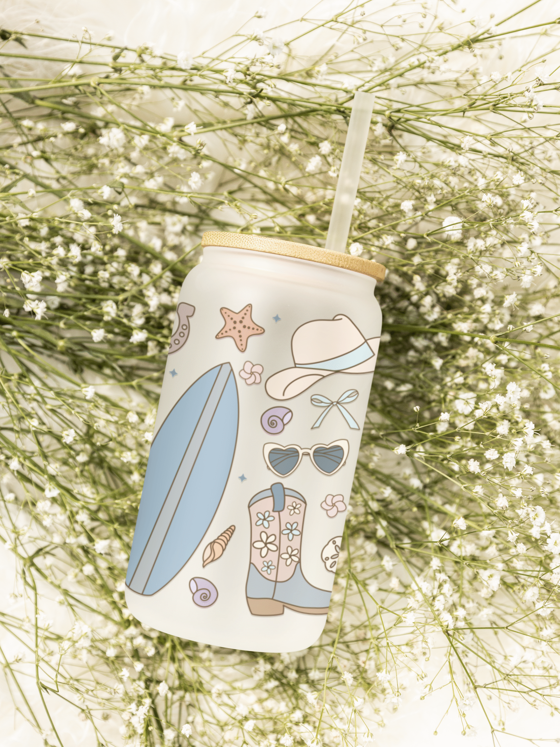 Szklanka 550 ml z bambusowym wieczkiem „Cowboy Summer”