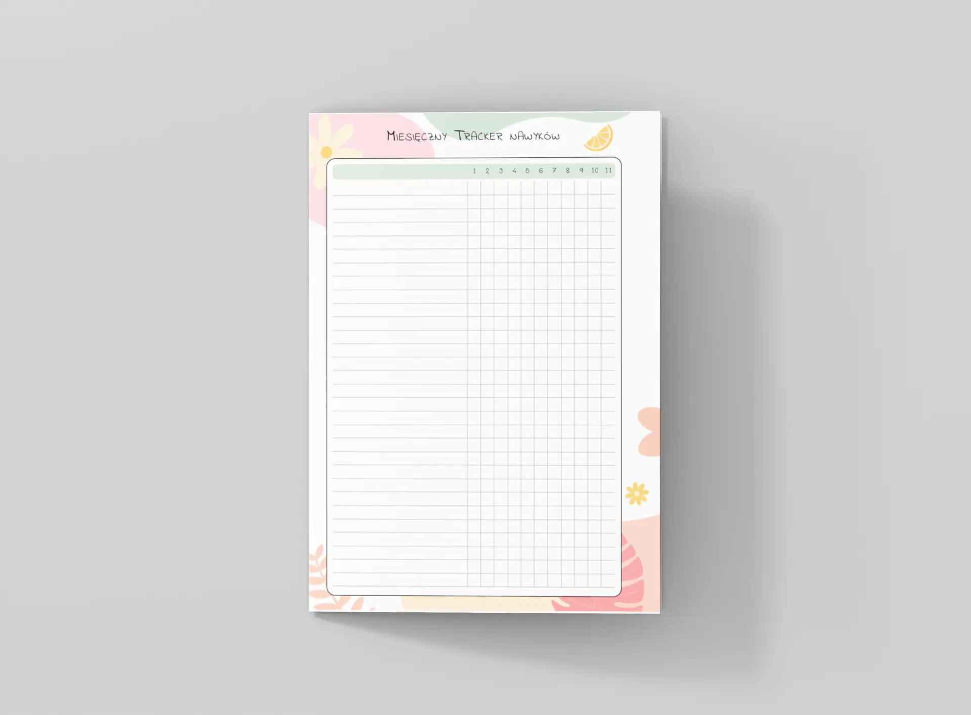 Wkład jest drukowany na papierze o gramaturze 100 g/m², co zapewnia doskonałą jakość pisania. Możesz używać długopisów, cienkopisów czy markerów, nie martwiąc się o przebijanie tuszu. Układ jest przejrzysty i prosty w użyciu. Każda strona dedykowana jest jednemu tygodniowi, co pozwala na skuteczne planowanie nawyków na przestrzeni czasu.